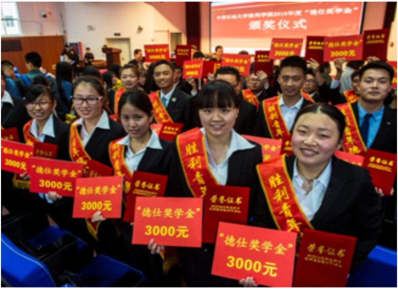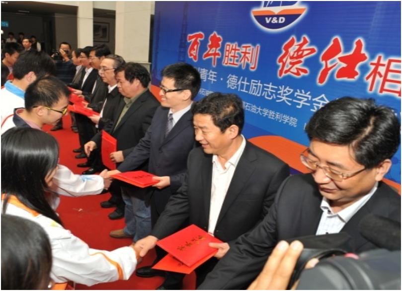 A hundred years of victory, De Shi with each other. Reserve personnel training, help the successful development, the establishment of "Deshi Deshi scholarship" at the China University of Petroleum Institute of victory in 2011, reserve personnel training, help oil development, Deshi invite academicians personally awarded the scholarship, with the power of example to encourage students in Academic Initiative, Yongpangaofeng